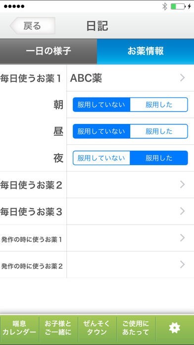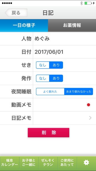 発作コントロールや治療記録管理に役立つ便利アプリ「喘息ダイアリー」 患者さんはもちろん、ご家族にも役立つアプリとして、使いやすいカレンダー機能などが充実しています。 発作や夜間症状などを手軽に入力できる他、喘鳴の動画撮影も行えるため、後日医師に説明する際にも活用することができるでしょう。 タイマー機能を用意しており、1日3回まで服薬時間をアラームでお知らせ可能。 さらに病院の待ち時間に暇つぶしとしても使える、じゃんけんゲームを搭載しています。