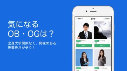 スマホで簡単にOB訪問・就職相談の相手が見つかります。