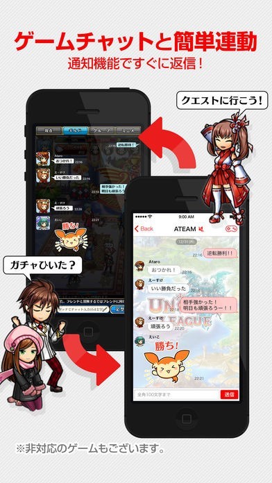 ・ゲーム内のチャットと連動したチャットができます。(チャットメッセージの通知を受け取ることもできます)