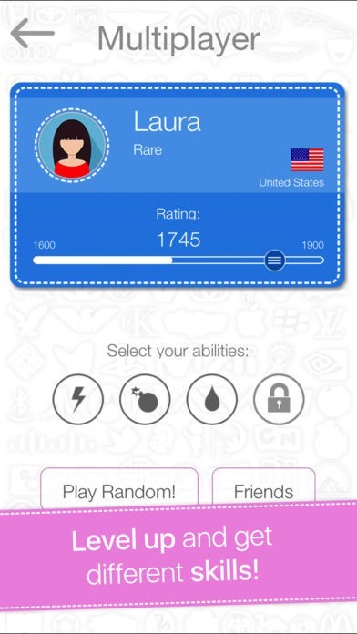 Turn the game into a challenge and compete on real time against friends or random players. Show them who's the "Logo-boss" by upgrading your rating and use the available powers for an strategic match.