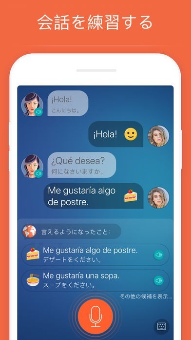 「Mondly: スペイン語を無料で学ぼう」では主にユーザーの会話スキルをアップさせてくれます。ネイティブスピーカーに続いて喋れば、最新の機能によって、ユーザーの発音を細かくチェックしてくれます。