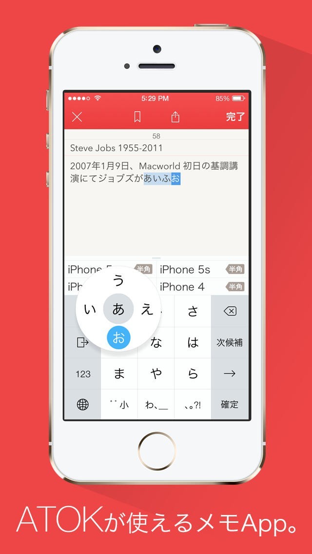ATOK Padは、WindowsやMacで高い評価を受けてきたATOKの良さをそのままに、iPhone/iPad用のアプリとしてメモやTwitterなど様々な文章入力のために利用することができます。