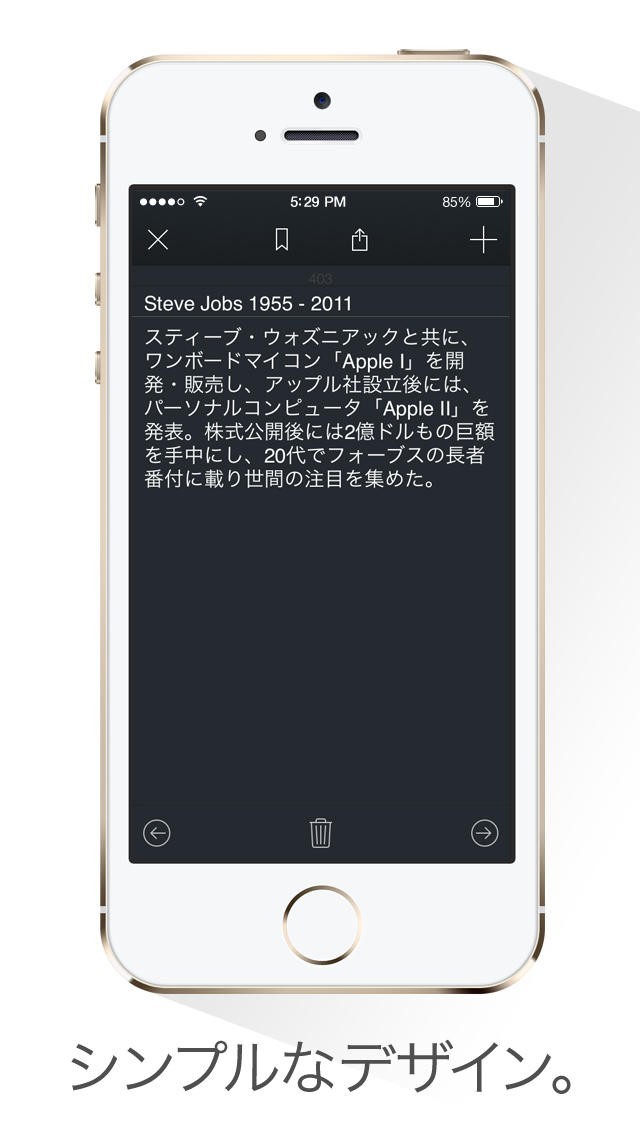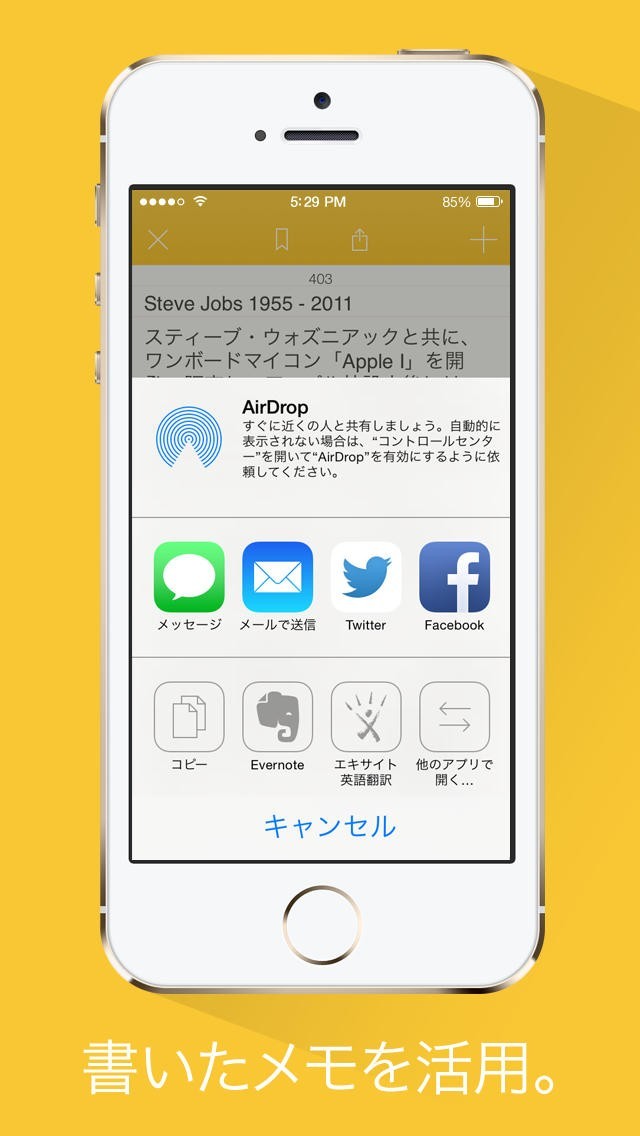 このメモアプリには、日本語入力システムATOKを利用してスムーズに文章を入力する機能があります。ATOK Pad以外のアプリケーションには、この機能で直接入力することはできませんのでご注意ください。