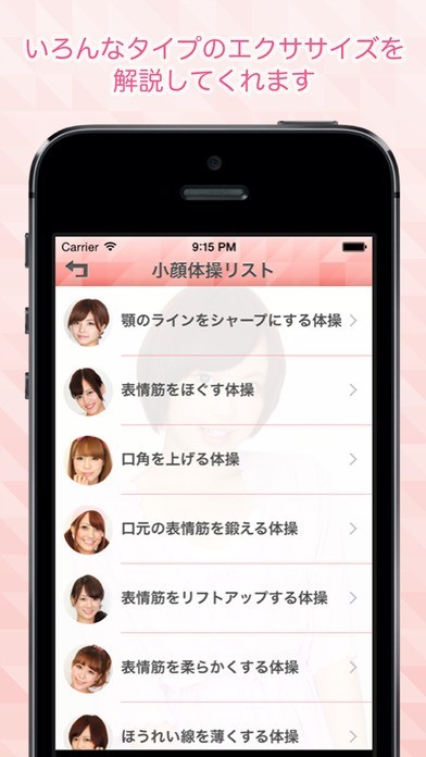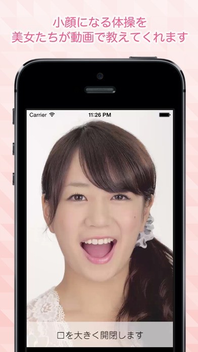 美女が小顔体操を自分の顔を動かしながら教えてくれる動画アプリです。小顔の美女・モデルさんが画面いっぱいに表示され、細かい表情筋・口や目の動きで優しく小顔体操を伝授してくれます。モデルさん達を見て楽しむこともできますし、小顔体操したいタイプを選んで体操できるので効果的です。雑誌を見ながら体操するのは難しいですが、このアプリでモデルさんと同じ表情をする事を意識すれば簡単に小顔を目指せます。