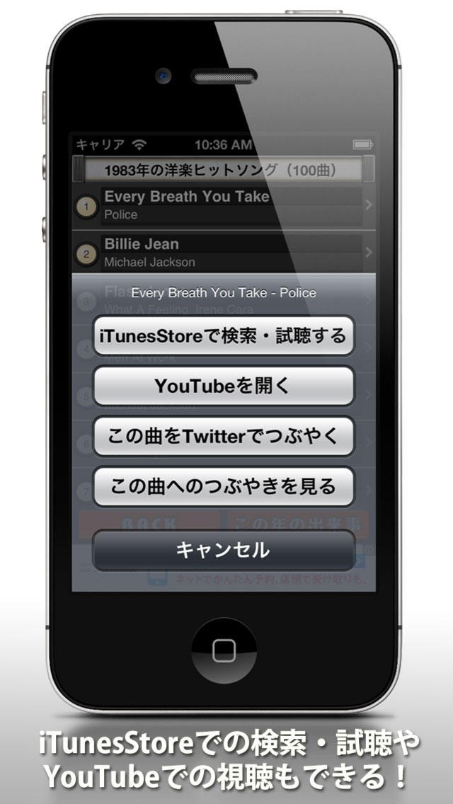 過去50年の間にヒットした洋楽が掲載されているアプリで、全部で5000曲以上収録されています。年ごとにヒットした曲がランキング形式で100曲載っていますので、好きな曲がきっと見つかるでしょう。youtubeと連動していますので、気になった曲はすぐに聞くこともできます。アプリ内には「その年の出来事」の欄があり、wikipediaと連動しているので曲が流行った年の背景に何が起こっていたのか把握することもできます。ツイッターとも連携しているので、お気に入りが見つかると友人と共有してもいいでしょう。