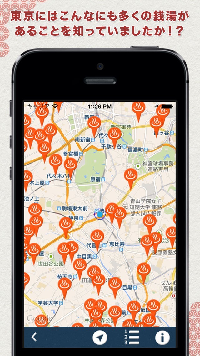 「銭湯マップ東京」は現在地から近行って東京の銭湯を探し出して一覧表示が出来ます。一覧から銭湯を選ぶとグーグルマップにとびます。選んだ銭湯は温泉マーカーの箇所を押せば詳細がわかります。銭湯のホームページとリンクされているので検索の手間が省けて便利です。ホームページから温泉の種類など詳細を調べてから行くと良いでしょう。またスタンプラリー機能は、銭湯に行ってスタンプのコレクションが可能です。集めたスタンプ数は「世界ランキング」機能で競う事が出来ます。
