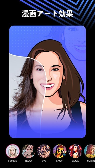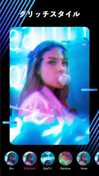 いろいろなスタイルのグリッチがあります。明きるさ、コントラスト、シャープやハイライトなどを編集できて、写真が一新します。