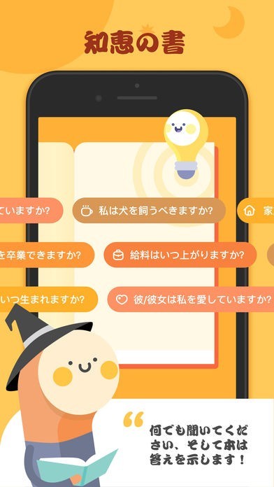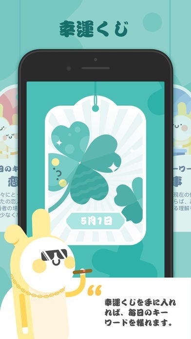 幸運くじ機能で今日のキーワードを得ることができます。それから、キーワードに関して何が起こるかを予測して、ラッキーチャームからいくつかの提案を得ることができます。