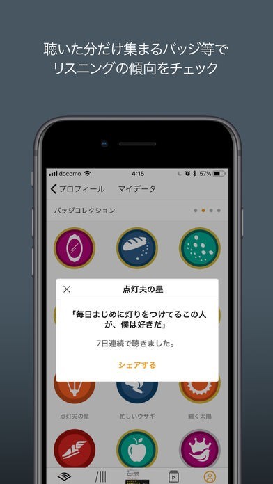 SNSでのシェア機能があるので、自分が聴いているタイトルを友人と共有しよう!