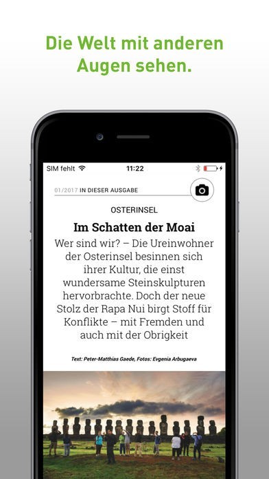 App Storeより引用Jeden Monat nährt Deutschlands führendes Reportagemagazin eines der stärksten positiven Gefühle, die wir Menschen kennen: die Neugier.