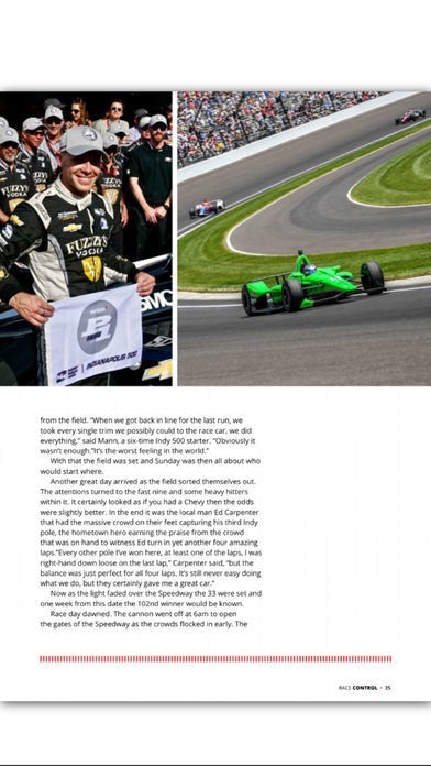 App Storeより引用Race Control - The IndyCar fan magazine that goes behind the scenes of the most demanding motor racing series on the planet, the IndyCar Series. It uncovers the series from a fans point of view and features everything from travel tips for attending an event to regular life style features. Detailed race reports and tips on understanding how the series works so everything a fan could want and expect. Stunning photos supplement the entire magazine, giving you a real taste on what this series is and how it is, without a doubt one of the best motorsport series in the world.