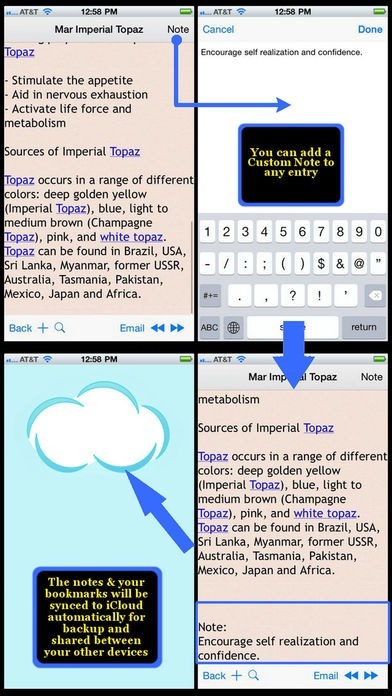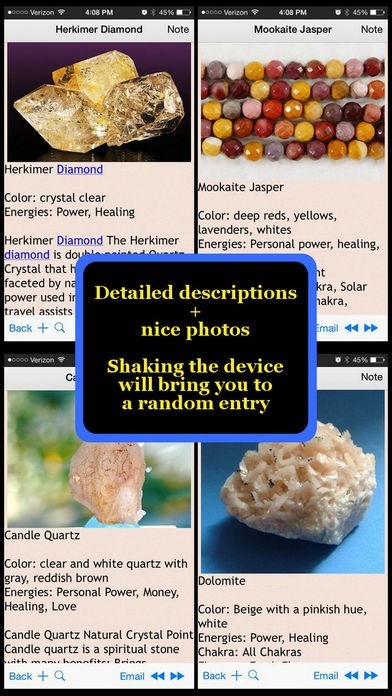 Gemstone & Crystal Powers Bible is an application that contains detailed information of over 170 different gemstones, crystals, and healing stones. The information contained are very detailed and useful for anyone who wishes to understand more about these mystical gems as well as using them to help improve oneself, both spiritually and physically. The gems are categorized by their properties/powers. Each entry of this encyclopedia contains the following information: