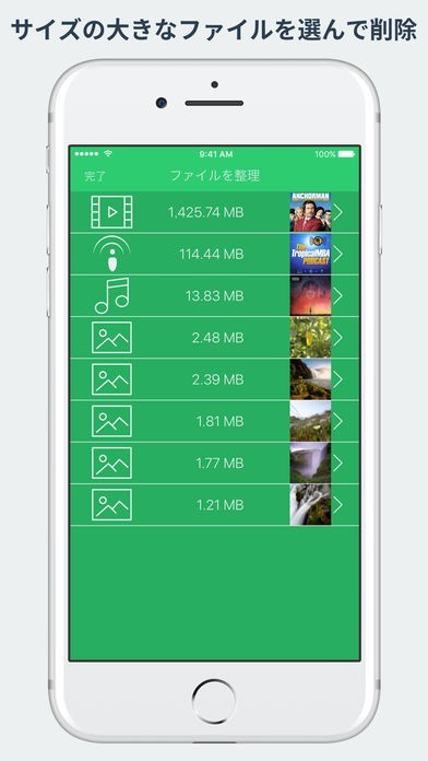 まず他のクリーナーアプリと違って一瞬でクリーニングが終わります!また大きなデータファイルを表示してくれるというのも便利な機能で操作も簡単なので誰にでも使うことが出来るアプリです。