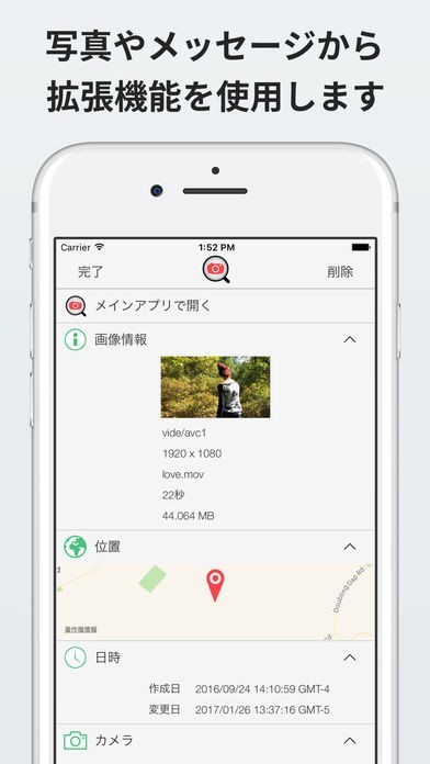 画像のサイズ情報、撮影場所、日時を知ることができる
