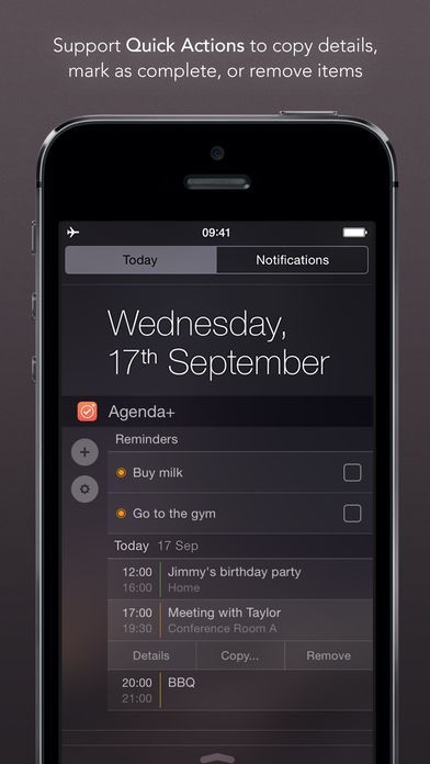 This enhances the stock calendar widget with tons of extra features. Plus, it combines calendar and reminder widgets into a useful one. All these made Agenda+ a must-have widget and the best alternative to the stock calendar and reminder widgets for your new iOS 8.