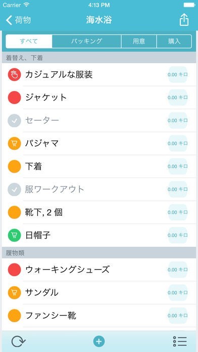 旅行やイベントに行くときにパスポートや免許証など、必要な荷物を忘れないように管理することができるアプリとなっていて、重量や数量、優先順位などを入力することができます。