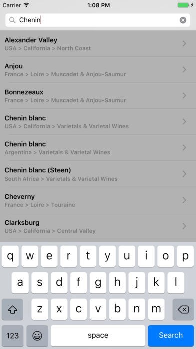 シンプルなレイアウトで作られているので、検索がとてもわかりやすく便利です。生産国を選ぶと、細かくわかれた生産地域の一覧が表示されるので、体系的に知ることができます。ワインが身近になり、もっと楽しめるようになります。