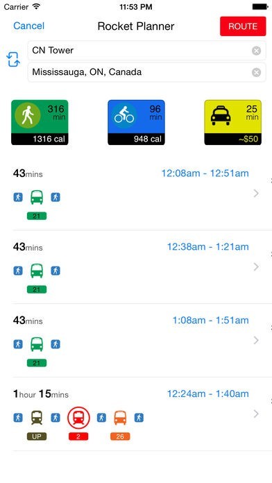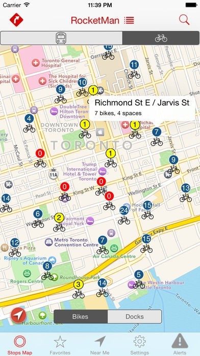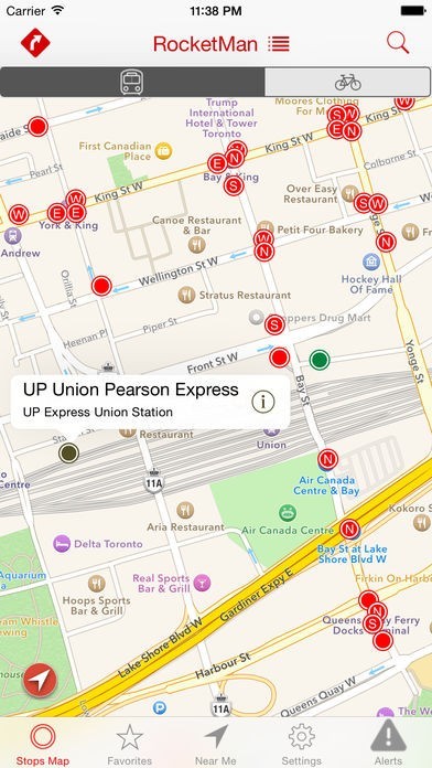 「RocketMan Transit App」を使用するとカナダや米国で乗り継ぎをする時、地図上のバスやバス停などをタップするだけで時刻を調べることができます。
