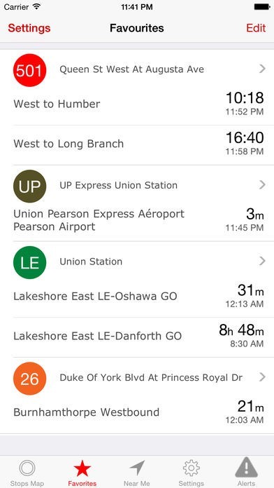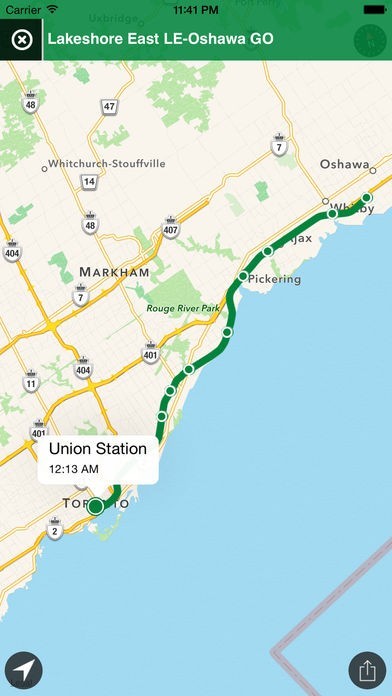 カナダや米国などを旅している時、画面をタップするだけで容易に周辺のバス停や自転車共有ステーションの場所がわかります。またバスの正確な到着時間も細かく表示することができます。
