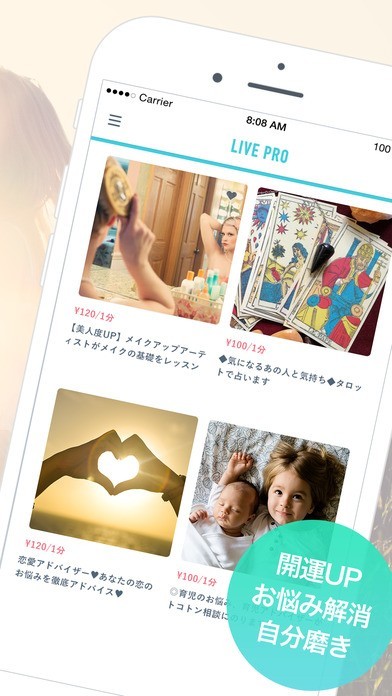 女子のための相談アプリ!恋愛・美容・占い・ダイエットの悩みはプロが解決-ライブプロのスクリーンショット