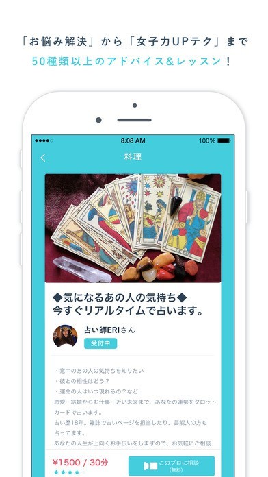 App Storeより引用恋愛・美容・育児・ダイエット…女性の様々な悩みをプロに相談できる!