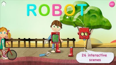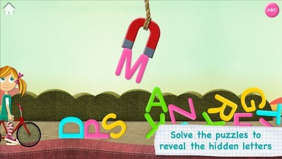 Start your journey by putting Beck or Bo on the bike. Drag the bike to move seamlessly across 26 interactive scenes loaded with fun preschool activities and puzzles. Each scene offers a unique, hide and seek game associated with a letter and a word. The G is wrapped in a Gift, the H is hidden under a Hat, the S swims with the Seal, the J is jammed up in the Jelly, the W is pulled out of a Well.