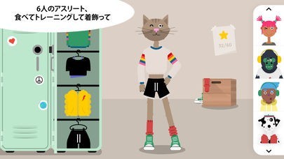6種類のおもしろ系キャラからお気に入りを1人選んだら、スタイリッシュなスポーツウェアに着替えさせてレッツ・エクセサイズ!ゴリラにスクワットはできるのか、はたまたネコちゃんはプロ並みにスノーボードを乗りこなせるのか、その目で確かめよう。
