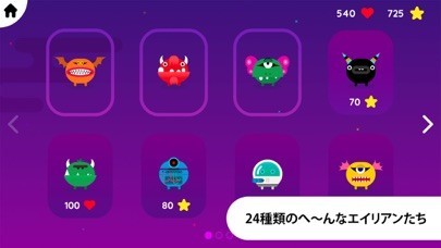 • ハートやスターを集めて新しいエイリアンをアンロック
