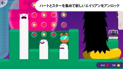 難易度は2つ、いくら失敗しても大丈夫なので子供でも大人でも変なストレスなく200以上のステージの旅が楽しめるよ。プレイしていく中でスターやハートを集めていこう、たくさん集めて24種類もいるエイリアン、Thinkrollsオールスターを手に入れよう。