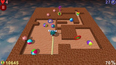 「AirXonix」は1980年代にブームとなったアーケードゲーム、「Xonix(クイックス)」のリメイクです。プレイヤーはプロペラで空を飛ぶ機械を操作して、フィールドを転がるボールを取り囲んでいきます。