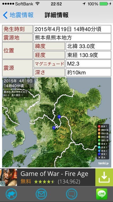 スマートフォンを使って緊急地震速報に関する詳細な情報をチェックすることができるアプリとなっていて、緊急地震速報の発声した時間や位置、震源地などを確認することができます。