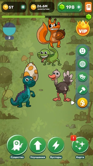フィールド内の卵をタップし、生まれてきた生き物を組み合わせて行くゲームです。同じ種類を探していき、どんどん組み合わせて行く事で、より進化した生き物が誕生していきます。