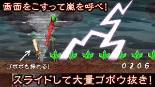 画面をこすると竜巻発生、スライドでゴボウが抜ける
