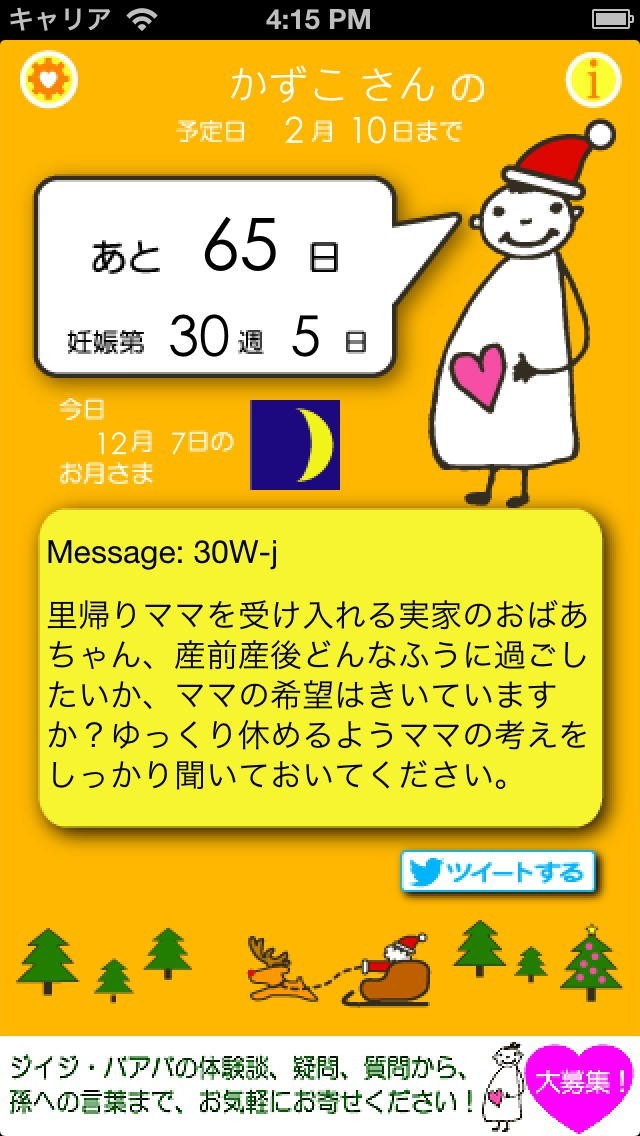 赤ちゃんを迎える準備を家族やパパと一緒に始めたい!そんなママに便利な『BABY in ME マタニティカレンダー』は、出産予定日までのサポートやカウントダウン機能などが充実したアプリです。出産予定日までのカウントダウン表示を行いつつ、妊娠週間も教えてくれる機能を搭載。今が妊娠何週目に当たるのかを数字で把握することができるので、体の変化に対応したり、出産準備がしやすくなるのが特徴です。また、パパ向けのメッセージ画面を設定できるのもこのアプリならではの嬉しいポイント。赤ちゃんの成長知識や妊婦さんについての情報を教えてくれるため、ママのサポートがしやすくなります。