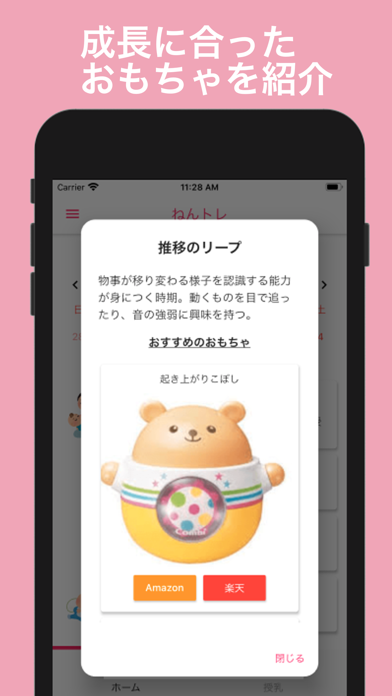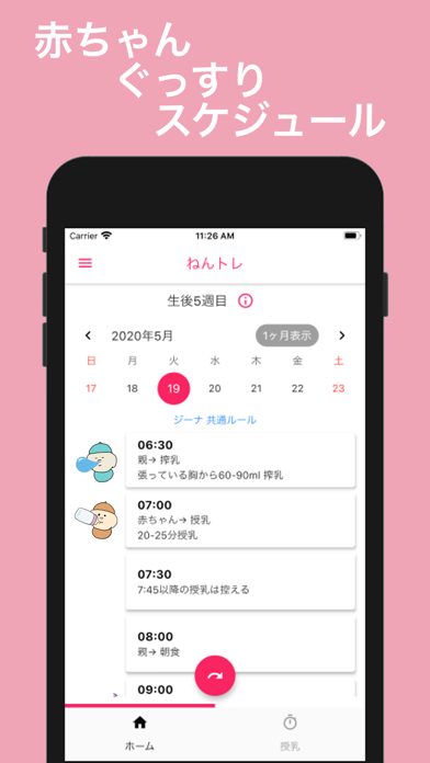 App Storeより引用欧米で人気の「ジーナ式」のねんねトレーニングスケジュール(ねんトレ)をいつでも確認できるアプリです。月齢に合わせた授乳や寝かしつけの最適なタイミングがわかるので、アプリに従うだけで赤ちゃんが長く寝やすくなります。