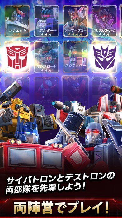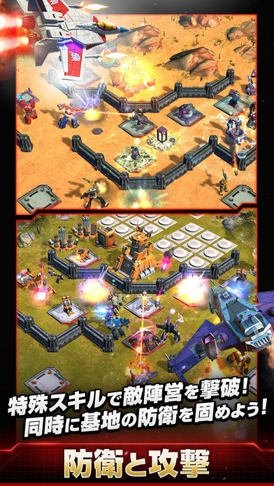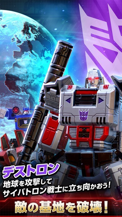 トランスフォーマー:アースウォーズはTVアニメと玩具展開されていたトランスフォーマーシリーズを舞台とした戦略シミュレーションゲームで、コンボイたちのサイバトロン戦士とメガトロンたちのデストロン軍団のどちらかでプレイできます。基地の構築や防衛、強化を行い、トランスフォーマーの特殊能力を使って敵を倒していくことがゲームの基本的な概要で、ストーリーモードと世界中のプレイヤーと連合軍を組んで戦ったり敵として戦えるオンラインモードが用意されています。