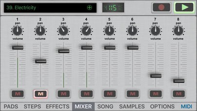 – 8 channel mixer with volume control and mute/solo for any individual instrument
