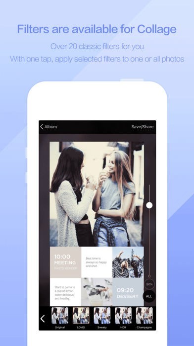 「Photo wonder」は美しく写真に写りたいという人に最適な画像処理アプリになります。このアプリには美容機能がついているのでタップ操作とドラッグ操作だけで人の肌を美白にしたり、ニキビやシミを消して美しい肌にしたり、瞳を拡大したりといったことが可能になっているので誰でも美しく写真にうつることができるようになっています。エフェクトやフレームを使うことでプロが撮影したかのようなモノクロ写真などを撮影することもできます。