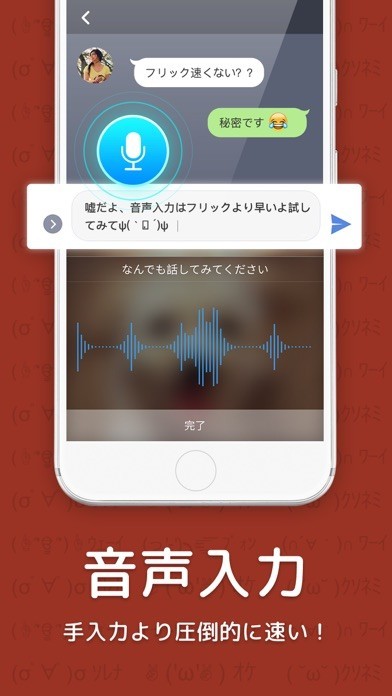 2900万ものダウンロード数を達成している大人気アプリである「Simeji」は、文字を入力する際にアプリ下部に表示されるキーボードを自分の好みのテーマに変更することができます。 よって、ありきたりなものが嫌いという方や、カワイイを求めているという方の希望を叶えてくれて入力すること自体を楽しいものへと変えてくれます。 それ以外にも、iPhoneに標準搭載されているもの以上の顔文字や絵文字を利用でき、その数は50000にも及ぶのでいろいろな表現をすることができたりして、他の人とは違う個性を出すことが出来ます。 さらには、変換する際に新しい言葉にも随時対応してくれたり、予測変換精度も高いので、入力に手間がかかりません。 さいごに音声入力によって声にだしたものをそのまま文字に出来るので、便利です。