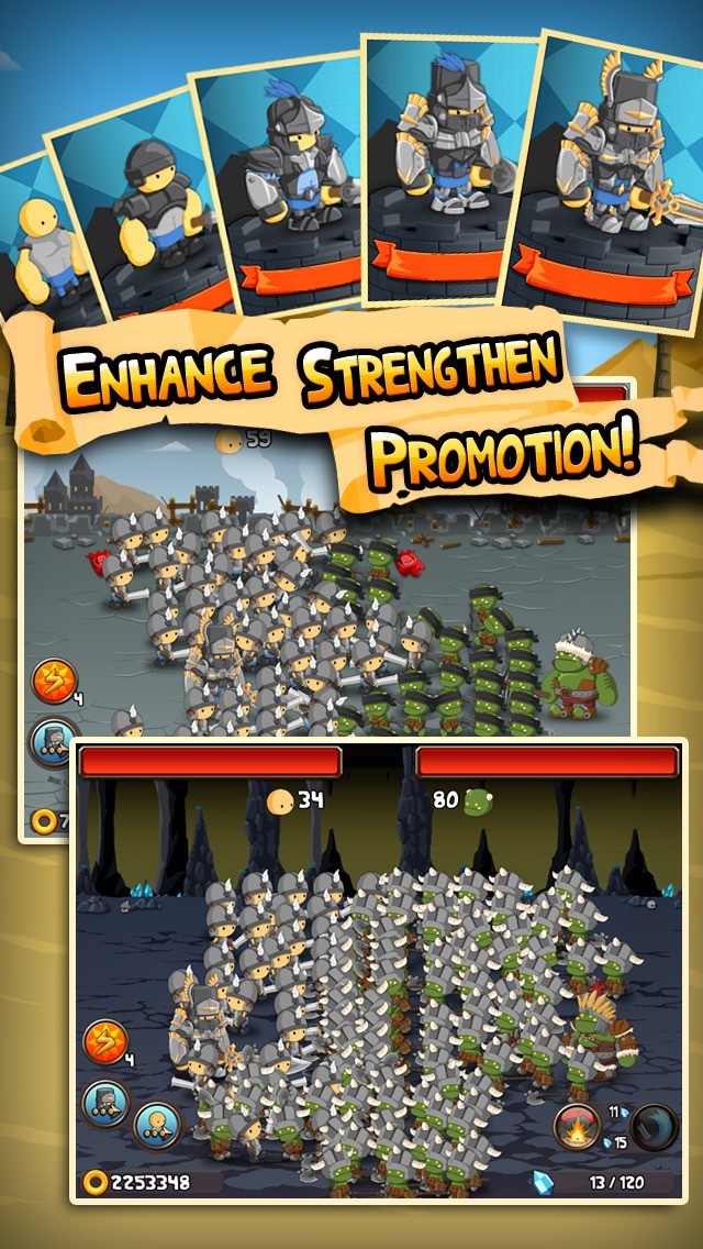 A Little Warとは味方の兵隊を戦場に送り出し、敵軍との攻防戦を繰り広げて進行させる、分かりやすい内容のバトルゲームアプリです。仲間の兵士のレベルアップを図ったり、戦いに必要な技能を養う点へと拘って制作されています。戦闘シーンでアクション技法が絶え間なく要求される訳ではありません。兵隊を何名位送るのかを決定し、後はその数の兵士達を戦地へと送り出すだけでOKです。バトルする時では直接操るのでなく、自動的に実施してくれます。プレイの最中でやらなくては行けない事は、硬貨を取り集める作業のみです。以降には回収したコインを利用して、兵隊のスキルをもっと向上させ、次回での戦いに備えておきます。