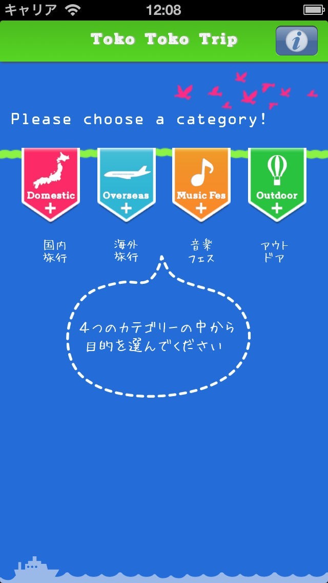 【国内旅行】【海外旅行】【音楽フェス】【アウトドア】の4種類のカテゴリーに分かれていて、