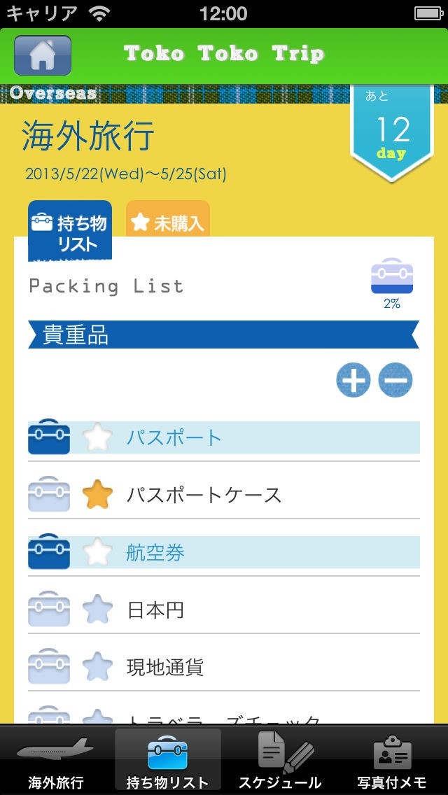 それぞれ違うテンプレートの持ち物リストをご用意。