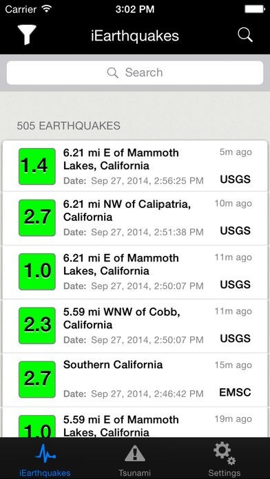 App Storeより引用iEarthquakes is App to provide the natural disasters; Earthquake, Tsunami Data feeds from official weather around the world.