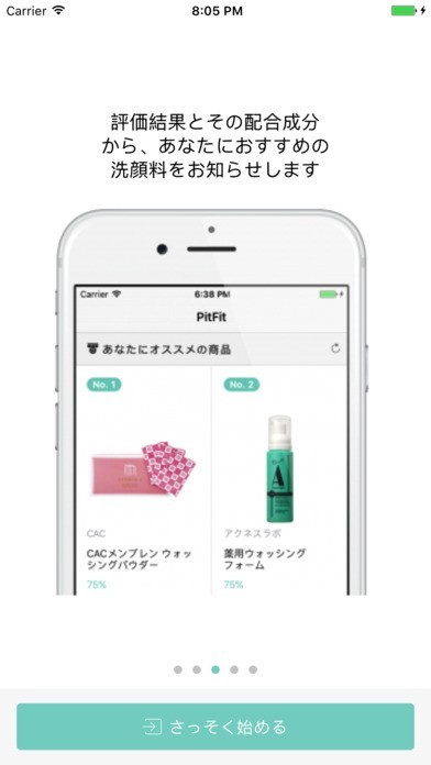 App Storeより引用「PitFit」は、あなたの肌にあった洗顔料が見つかるアプリです。