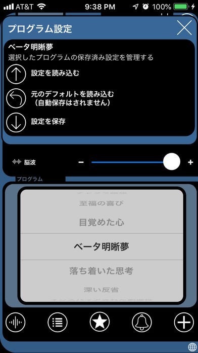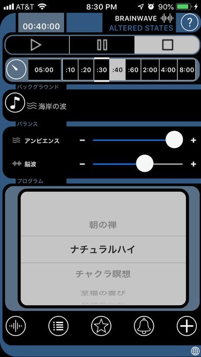 - お好みの脳波プログラムとアンビエント背景サウンドの自動保存