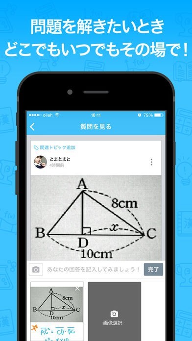 分からない問題を写真に撮って載せると回答を得ることが出来ます。
