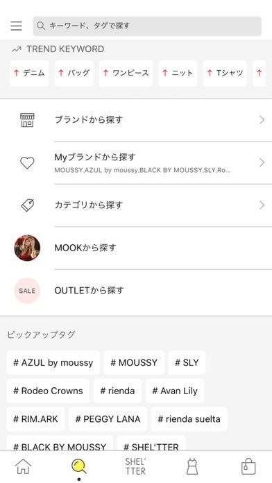 「シェルターウェブストア」は、スマートフォンでmoussyやSLYなどの公式通販サイトを利用することができるアプリとなっていて、いつでも気軽にショッピングを楽しめます。