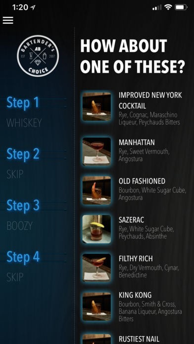 App Storeより引用From the master bartenders behind New York City's Attaboy, Diamond Reef and Milk & Honey comes Bartender's Choice, the definitive classic cocktail app. Search through hundreds of recipes by spirit, style of drink, or sensation. Ideal for home use or in any establishment wanting to serve better cocktails. Includes tips on ice, garnish, syrups, shaking & stirring. Here's to drinking better!