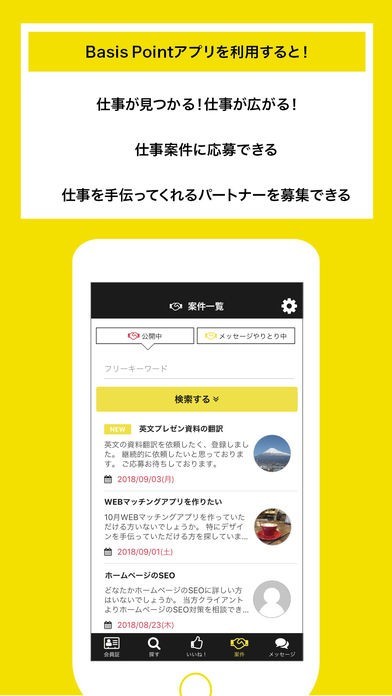 大きな活動を行う上で、共に歩める仲間を持つことはとても重要ですが、見つけることはとても難しいです。ですが、それを簡単にしてくれるのが本アプリの魅力です。コミュニティからの仲間探しや仕事の案件探しなどビジネスを行う方を様々な場面で助けてくれます。