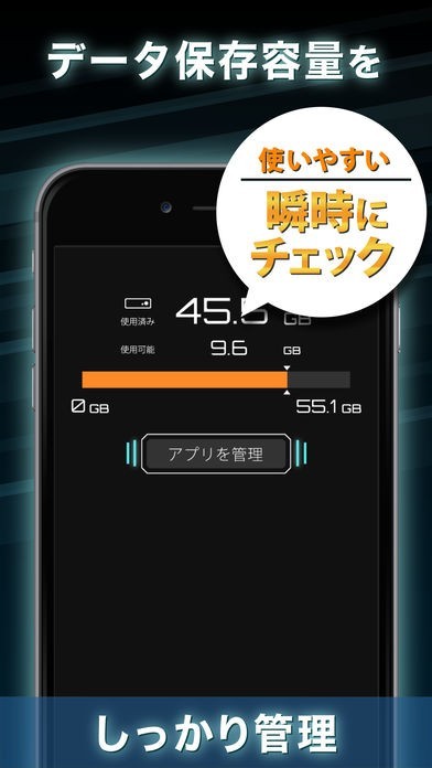 タップするだけでiPhoneの状態を調べて、無駄な容量などを見つけ出して削除することでiPhoneがサクサク動作するようになります。重い動作へのイライラもたった3秒で解消されます。